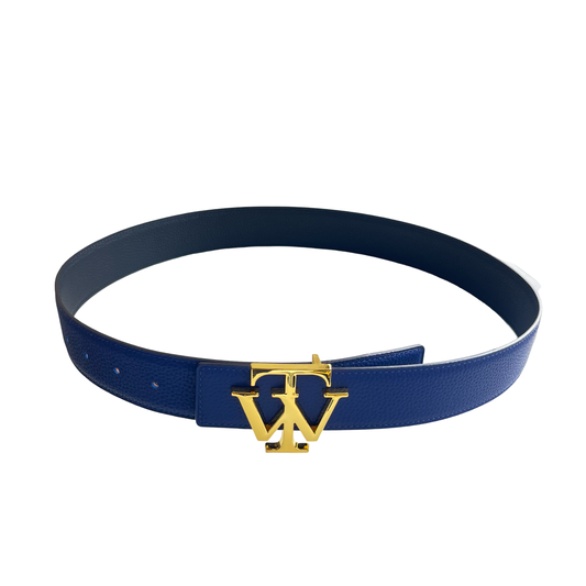 4-in-1 Luxury Reversible Cowhide 100% Leather Belt Black/Blue by Tewoah